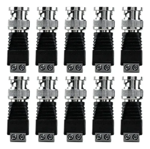 Kit com 10 conectores BNC macho com borne da marca Conex 1000. Ideal para instalação de câmeras de segurança com cabos coaxiais, proporcionando conexão segura e prática.