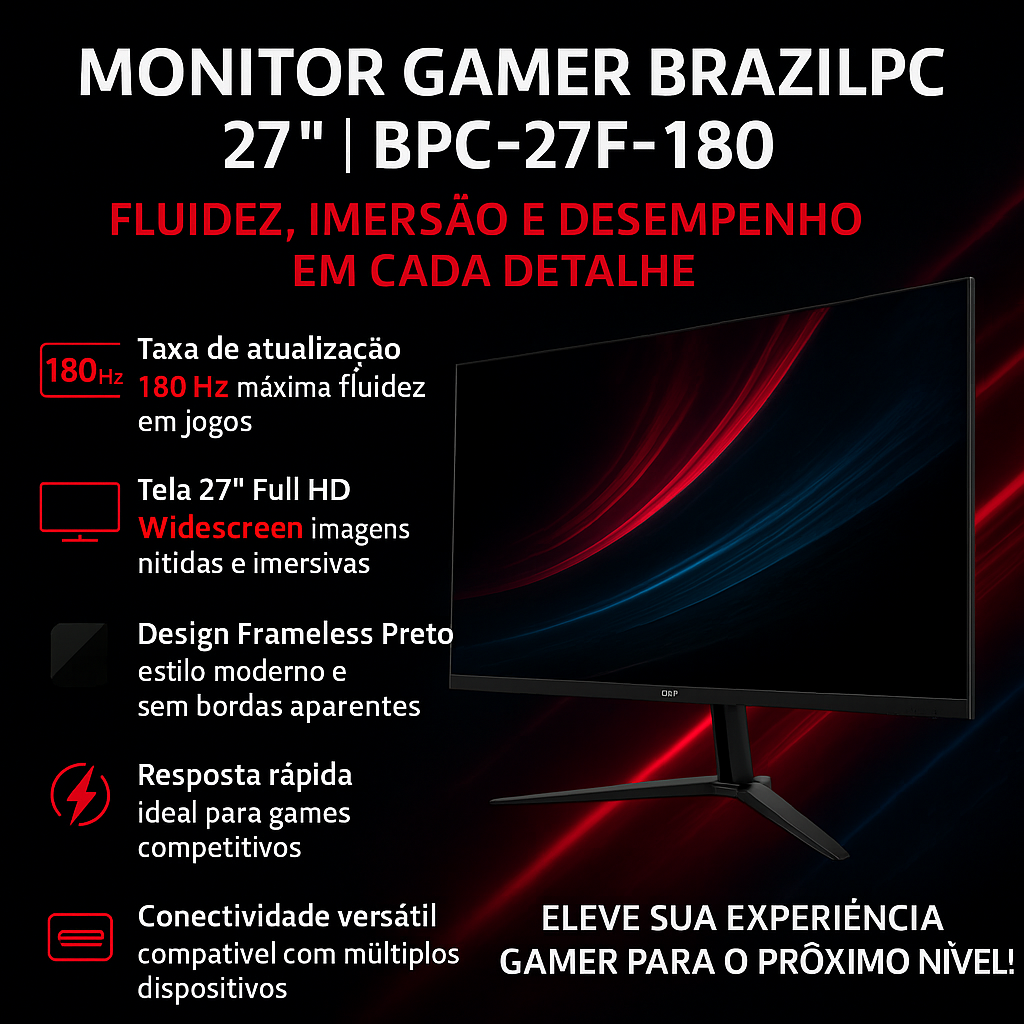 Monitor LED 27” BrazilPC Gamer BPC-27F-180 FHD 180Hz – Desempenho e Imersão em Alta Velocidade (Box IF)