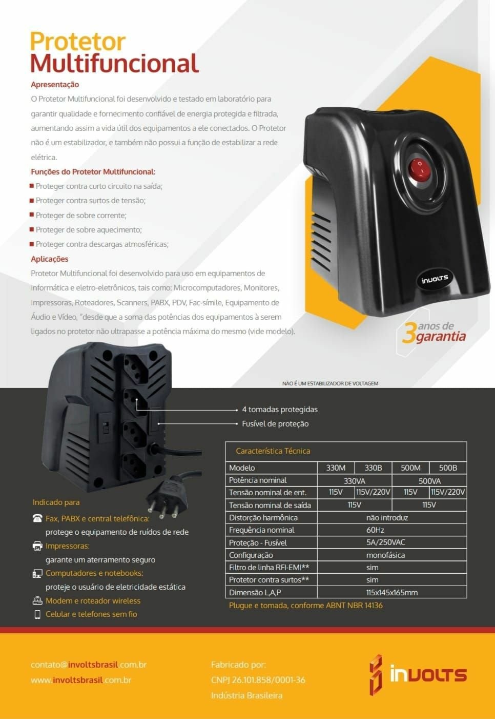 O Protetor Multifuncional foi desenvolvido e testado em laboratório para garantir qualidade e fornecimento confiável de energia elétrica protegida e filtrada, aumentando assim a vida útil dos equipamentos a ele conectados. O Protetor não é um estabilizador, e também não possui a função de estabilizar a rede elétrica.